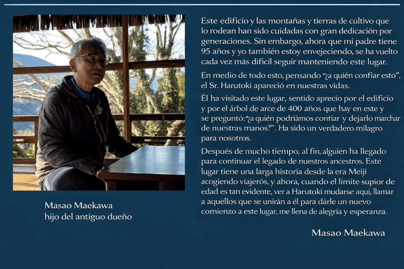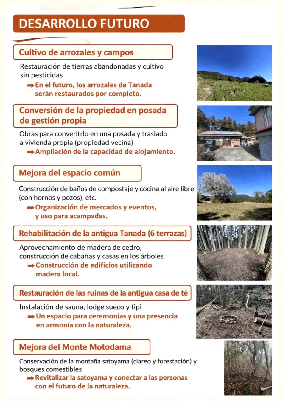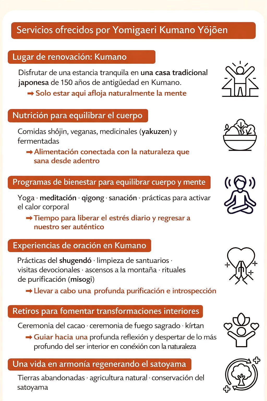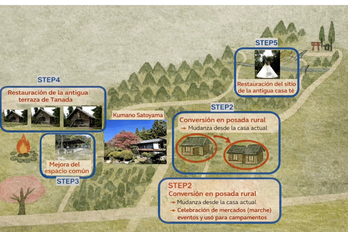 Nuestra visión es abrir “Yomigaeri Kumano Yojoen”, un lugar donde las personas puedan reconectar con la naturaleza, con sus cuerpos y con una dimensión más profunda de sí mismas.