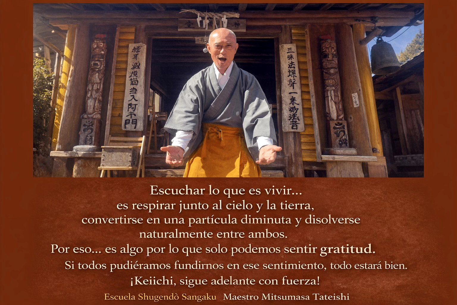 Con el tiempo, fui guiado a la tierra sagrada de Kumano, donde conocí a un maestro de Shugendō y recibí el nombre de Dharma «Kōryū» (Dragón de Luz). A través de la oración y la profunda inmersión en la naturaleza, llegué a una profunda comprensión: