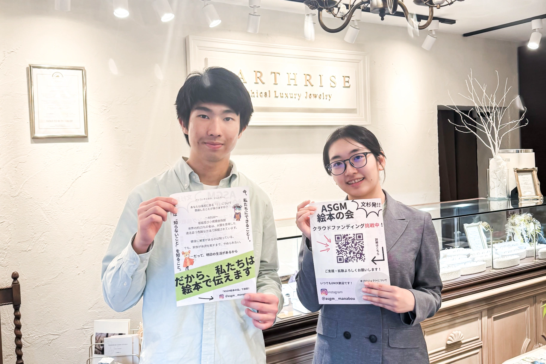 活動当初から応援してくださっているエシカルジュエリーショップEARTHRISE様にお邪魔し、ポスターを置いていただきました!地球にやさしい、みんなが幸せになれるジュエリーを取り扱っていらっしゃるとても素敵...