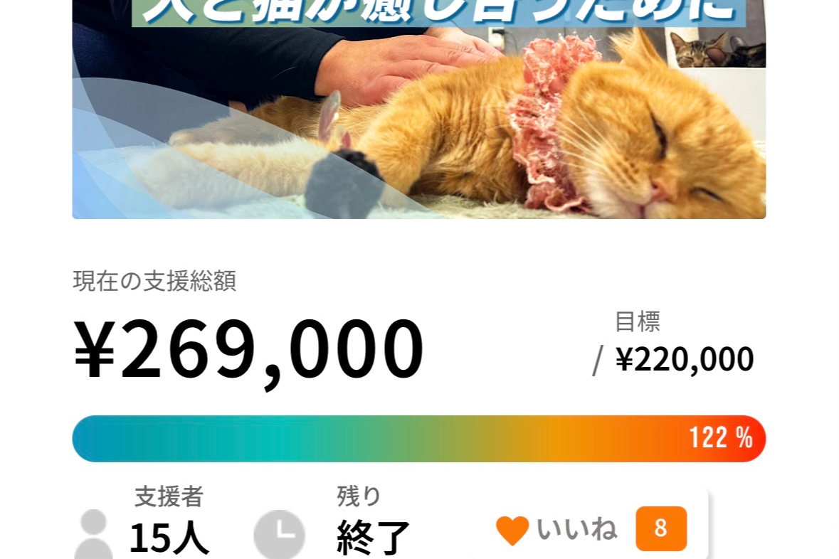 【プロジェクト終了の報告と心からのお礼】こんばんは。これまで、大阪の保護猫カフェ支援クラウドファンディングを応援してくださった皆さまへ、心よりお礼申し上げます。皆さまの温かいご支援のおかげで、目標...