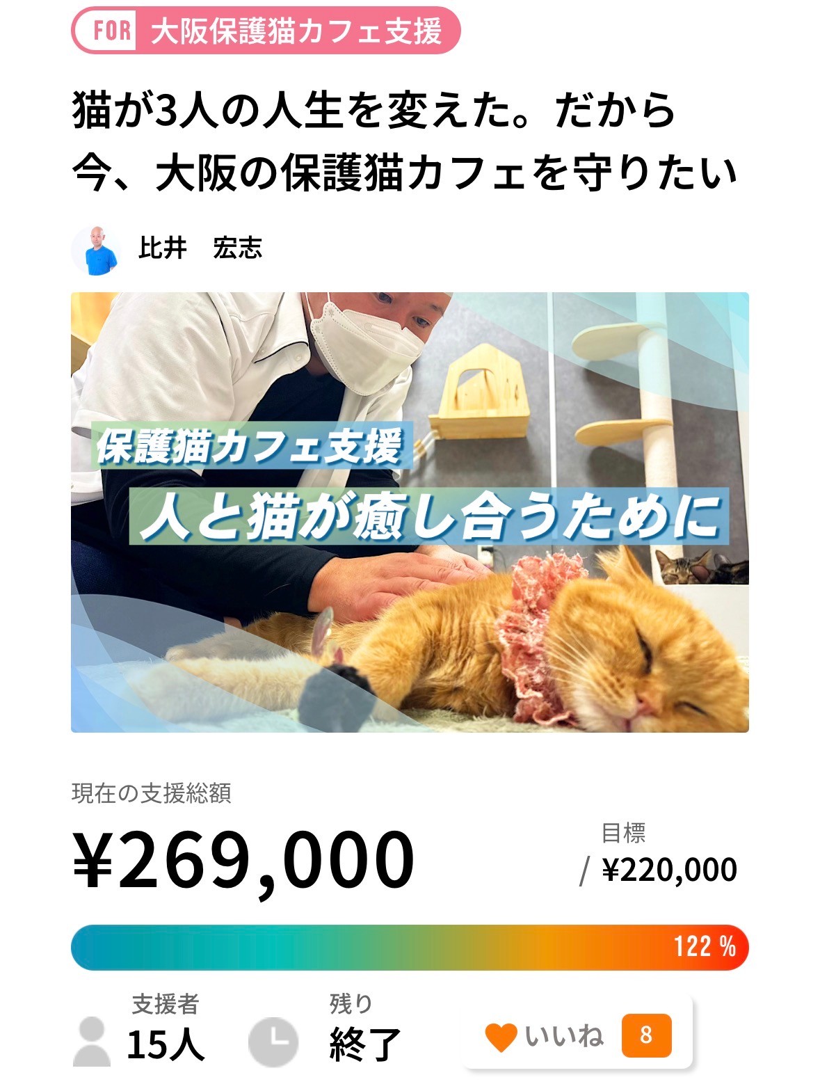 これまで、大阪の保護猫カフェ支援クラウドファンディングを応援してくださった皆さまへ、心よりお礼申し上げます。