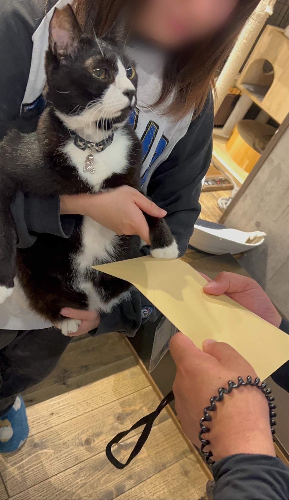 私がきれていますが、セス君とめちゃくちゃ目線があった状態で、渡してきました。