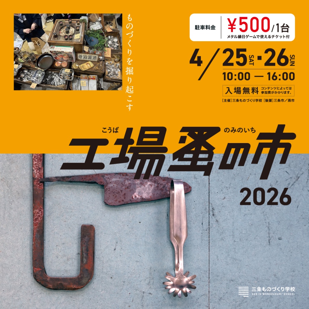今月末の4月25日(土)、26日(日) に、三条ものづくり学校で開催される「工場蚤の市」にて、出店を予定しています。