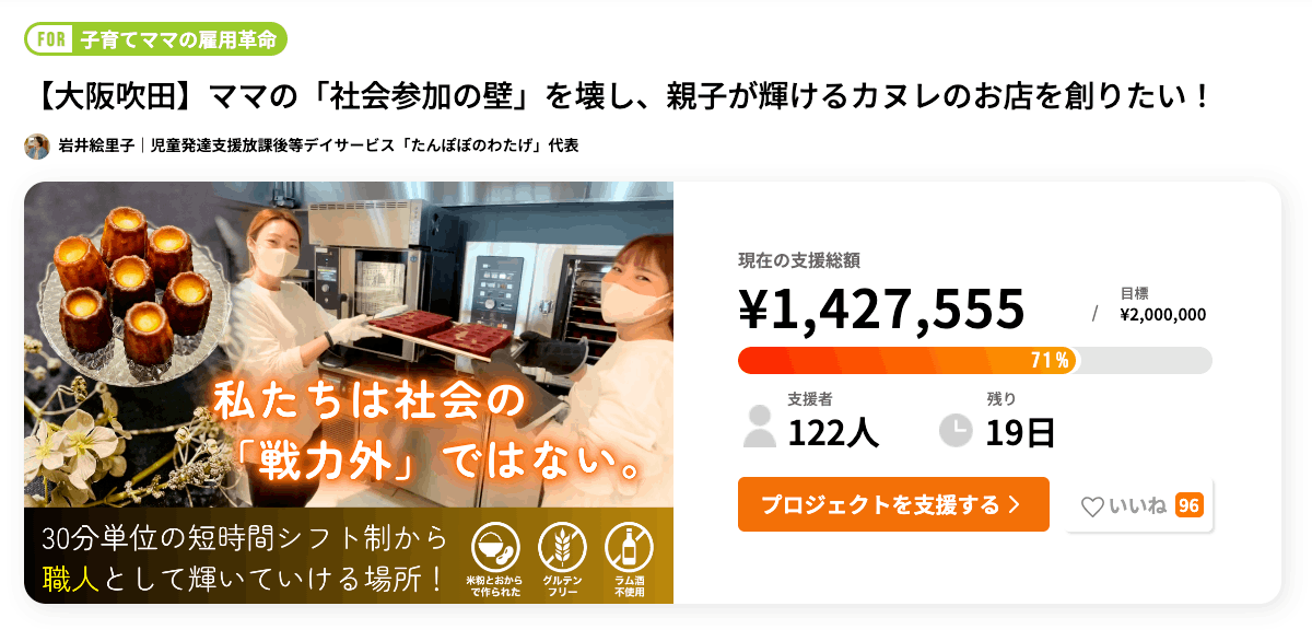 【大阪吹田】ママの「社会参加の壁」を壊し、親子が輝けるカヌレのお店を創りたい!