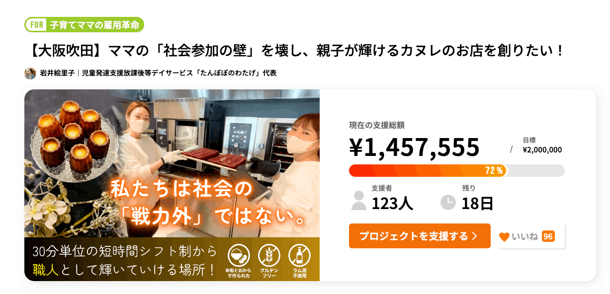 【大阪吹田】ママの「社会参加の壁」を壊し、親子が輝けるカヌレのお店を創りたい!