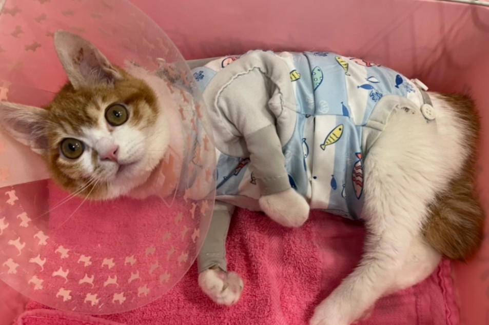 面会に行ってきました。保護服とカラーをつけた状態ではありましたが、落ち着いて過ごしていました。まだ傷は完全には治っておらず、もう少し時間が必要な状態です。それでも今日は機嫌もよく、頭を撫でると気持...