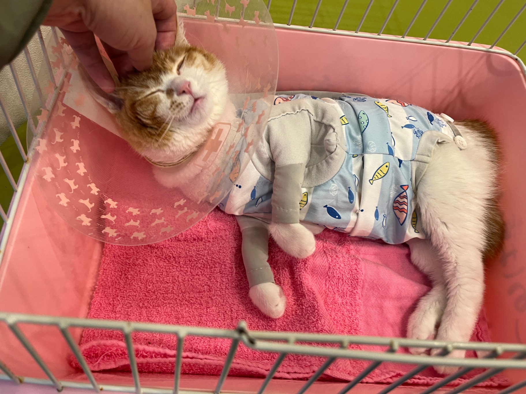 保護服とカラーをつけた状態ではありましたが、落ち着いて過ごしていました。