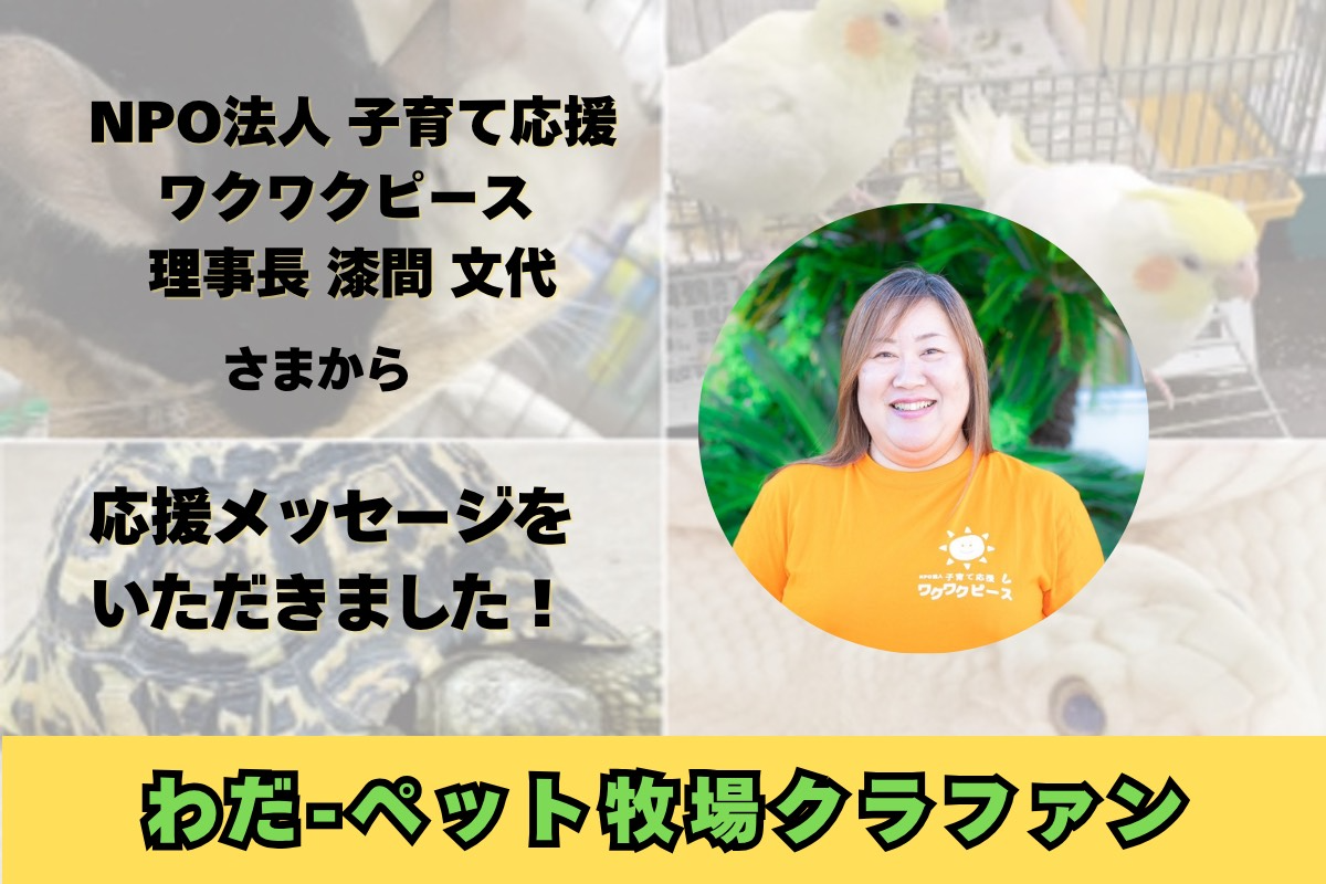 NPO法人 子育て応援 ワクワクピース 理事長 漆間文代さまから応援メッセージいただきました!