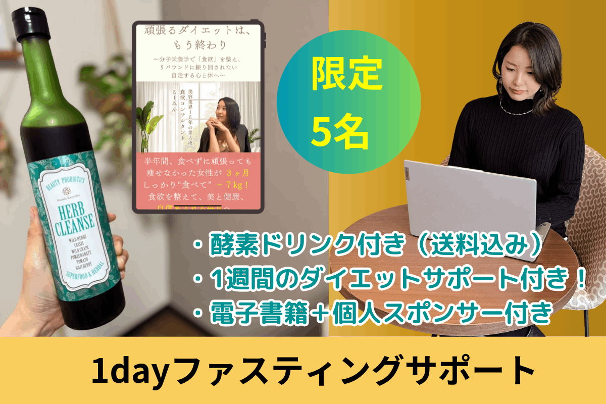 ▼1dayファスティング(1週間サポート・電子書籍・個人スポンサー付き)
