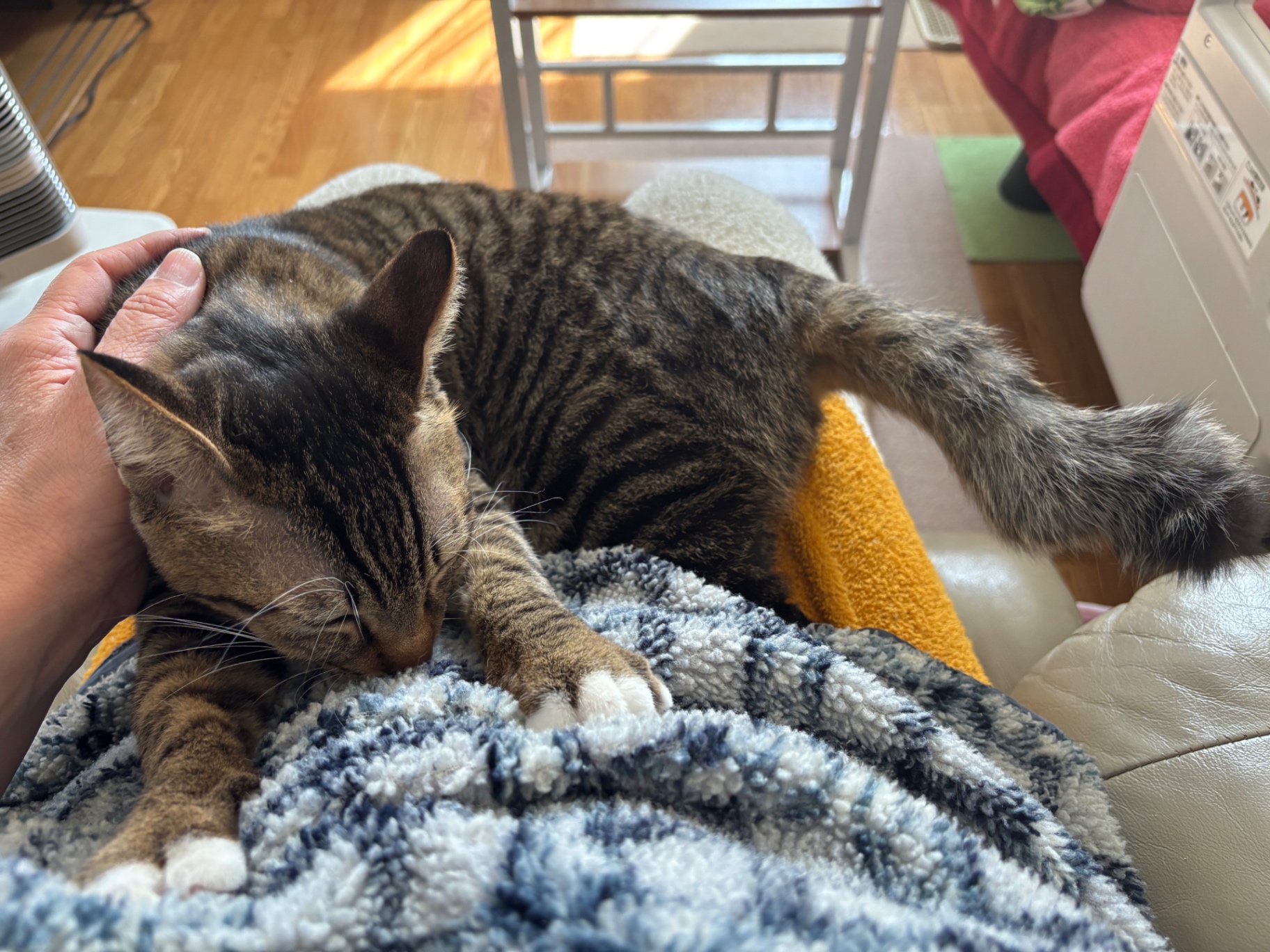 この頃から…ピンポン♪と『はむさん』が来られたらベッドの下や、ソファの陰に隠れるようになってきました。ですが一度捕まえられると暴れる事なく、エリザベスカラーを付けられ、おとなしく洗濯ネットに入ります。モカは本当に良い子です。