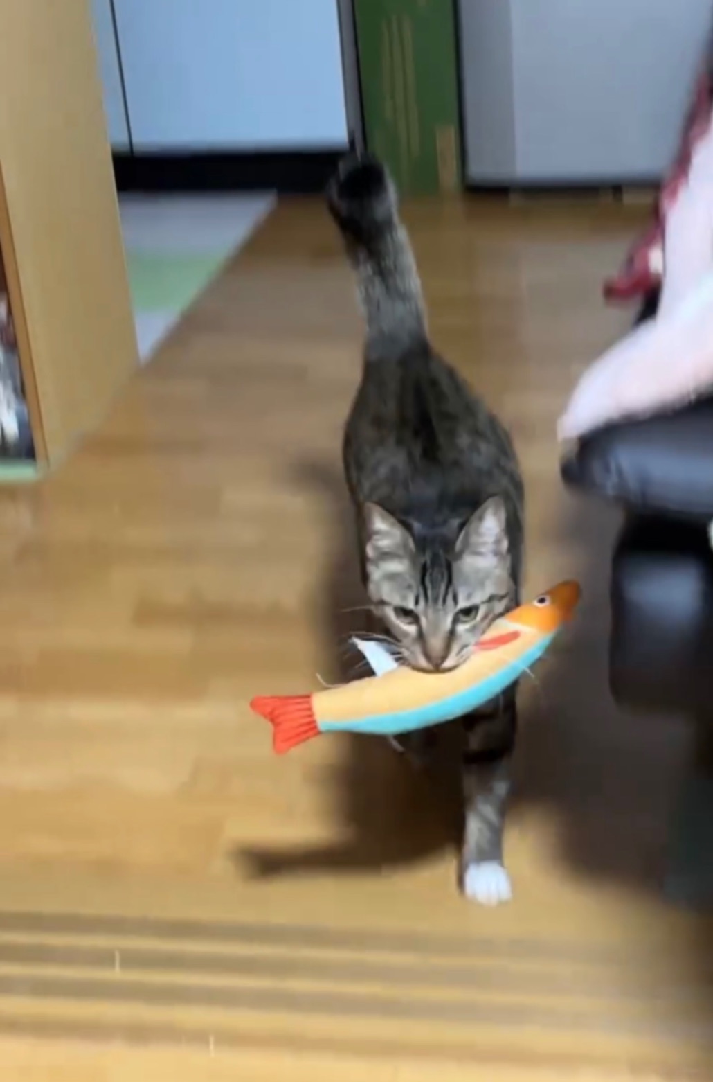 おかげ様でモカもよく遊び、トコトコ小走りでお魚をくわえて持ってきてくれるまでになりました♪