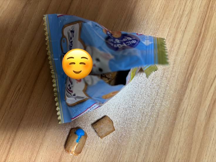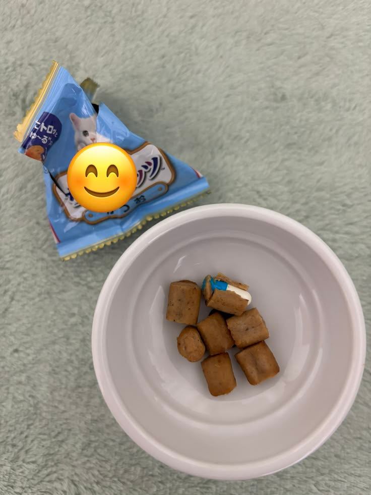 基本食べるというかほぼ飲み込んでいますが、ある時カリカリの音と共に白い粉が…慌てて手で受けチュールビッツにまぶして食べさせました。
