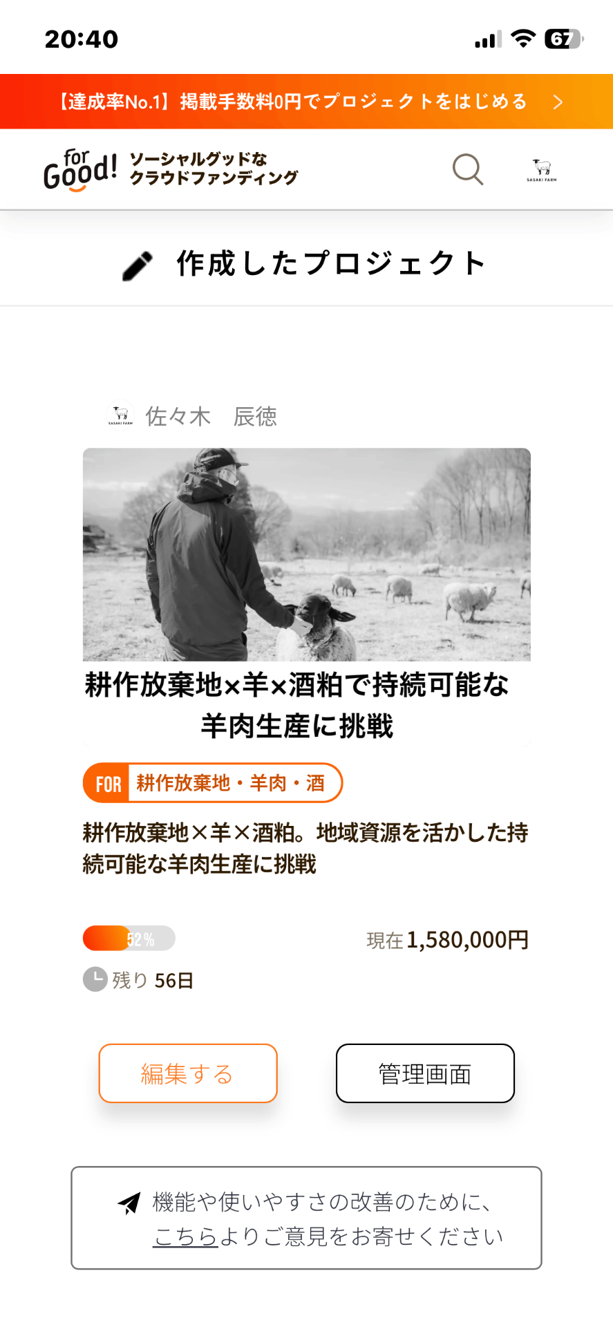 それは、拡散力がない事です。どうやら閲覧数に対して支援数はかなり高いそうですが、閲覧数がとても下がっている傾向です。私もフライヤー作成、イベント企画など、やっていきますが、皆様のご協力でまだ伸びる予想です。