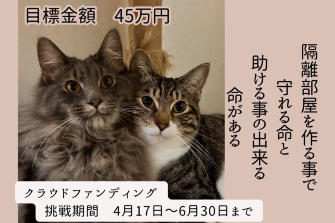 千葉県富津市!先住保護猫の命を脅やかす感染症から守る為に隔離部屋を作りたい!