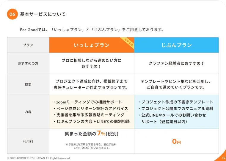 ForGoodではソーシャルグッドなプロジェクトのみの掲載をしております。クラウドファンディングに適しているか不安な方は、まずは無料相談をお勧めしています。お気軽にご連絡ください。