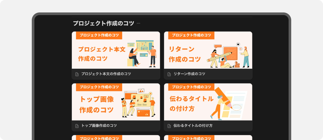 - 申し込み後、企画や進め方を確認するミーティングを行ってから、プロジェクトページを作成します。