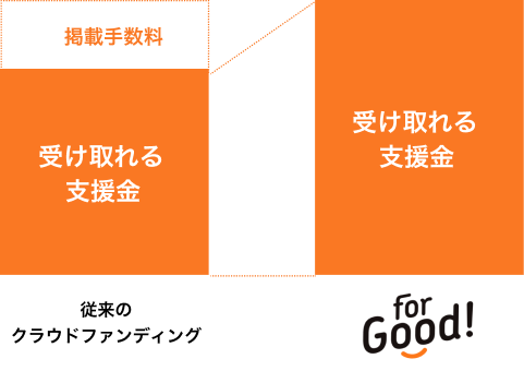 そこでFor Goodでは、プロジェクト実行者が支援金を全額受け取ることができるよう、システム運営にかかる手数料を支援者の方々に少しずつ支えていただく仕組みで運営しています。